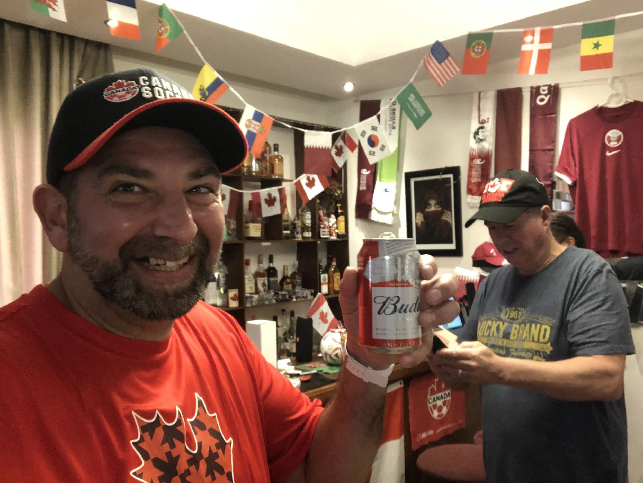 Went back to Aaron’s place and had a shower and more friends arrived . Cant forget the Linda’s who are really nice people also . Everyone is gearing up for the big Canada game ! Our first since 1986 at the World Cup . We had a few more drinks and called an Uber to get my gear to my room then walk to the stadium since it is so close . We tried to find the march to the stadium but might have missed it by a minute or two …. No big deal . We all got in without problems and were very early . Without alcohol being served there is not much to do aside from chat with whoever sits beside you or in your circumference and lucky for us we had some interesting folks around us .